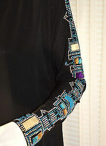 Eine schöne Abaya mit Stil. Modisch mit glitzernden Steinchen kunstvoll auf Ärmel und Vorderteil geschmückt.