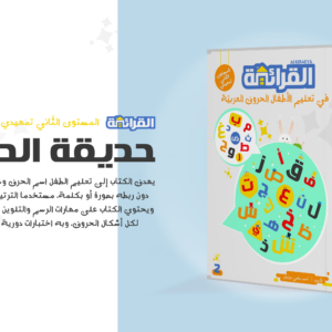 المستوى الثاني (تمهيدي) – حديقة الحروف : يهدف الكتاب إلى تعليم الطفل إسم الحرف وشكله وطريقة كتابته دون ربطه بصورة أو بكلمة مستخدما الترتيب التعليمي للمؤلف. يحتوي الكتاب على مهارات الرسم والتلوين والتتبع والكتابة الحرة لكل أشكال الحروف ويحتوي على تقييمات دورية لمستوى الطفل