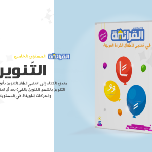المستوى الخامس – التنوين : يهدف الكتاب إلى: تعليم الطفل التنوين بأنواعه (التنوين بالفتح، التنوين بالكسر، التنوين بالضم) بعد أن تعلم الحركات القصيرة والحركات الطويلة في المستويات السابقة
